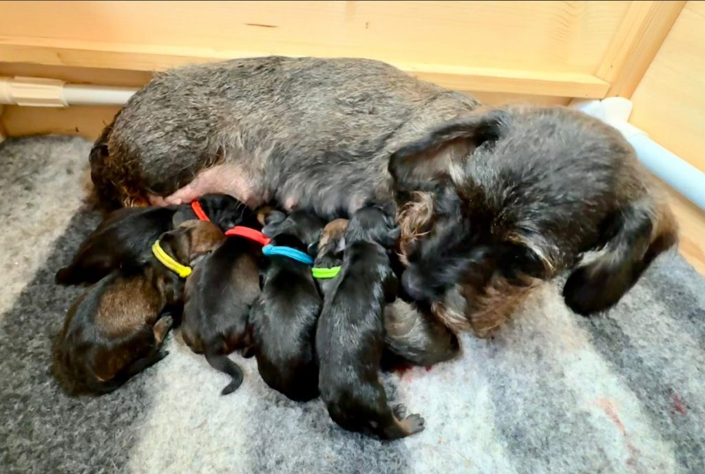 2,4 Welpen davon 2,1 in schwarz rot und 0,3 in dunkelsaufarben